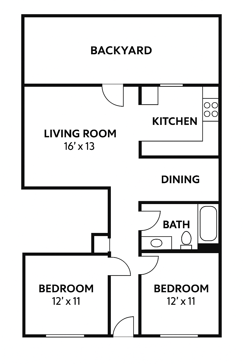 Layout: Spacious bedrooms, updated kitchen, washer/dryer hookups, private backyard.